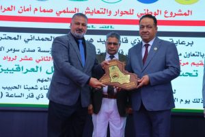 واختُتم الملتقى بتكريم رئيس جامعة ذي قار بمنحه درع السلام تثمينًا لجهوده في دعم برامج الحوار والتعايش السلمي، إلى جانب تكريم عدد من الشخصيات المشاركة من رواد السلام، تقديرًا لإسهاماتهم في خدمة السلم المجتمعي وتعزيز الاستقرار.