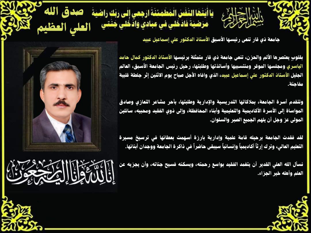 رئيس جامعة ذي قار يهنئ بشهر رمضان المبارك بمناسبة حلول شهر رمضان المبارك،