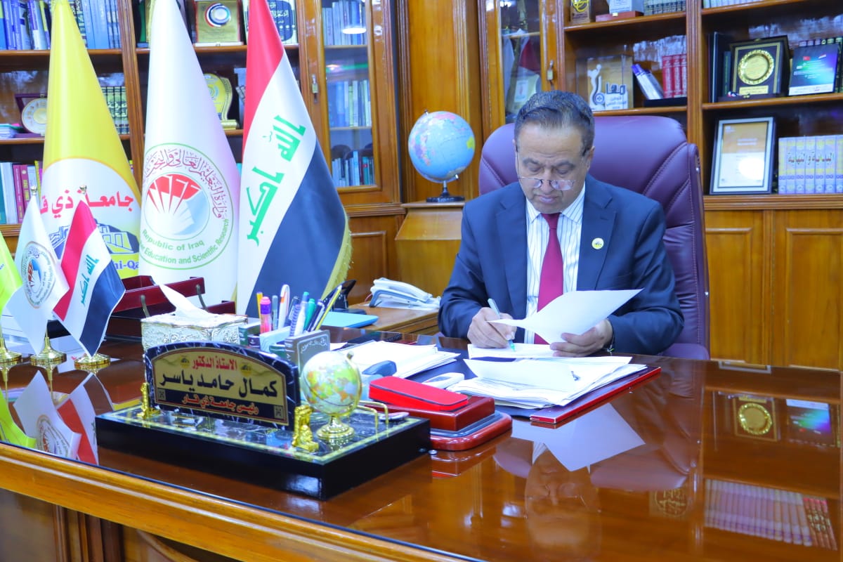 رئيس جامعة ذي قار يكرّم الأستاذ الزائر الدكتور شامل محسن هادي تقديرًا لمساهمته العلمية